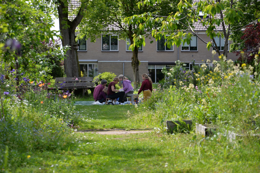 De gezamenlijke tuin voor de bewoners van de Jonker Sloetlaan te Bennekom